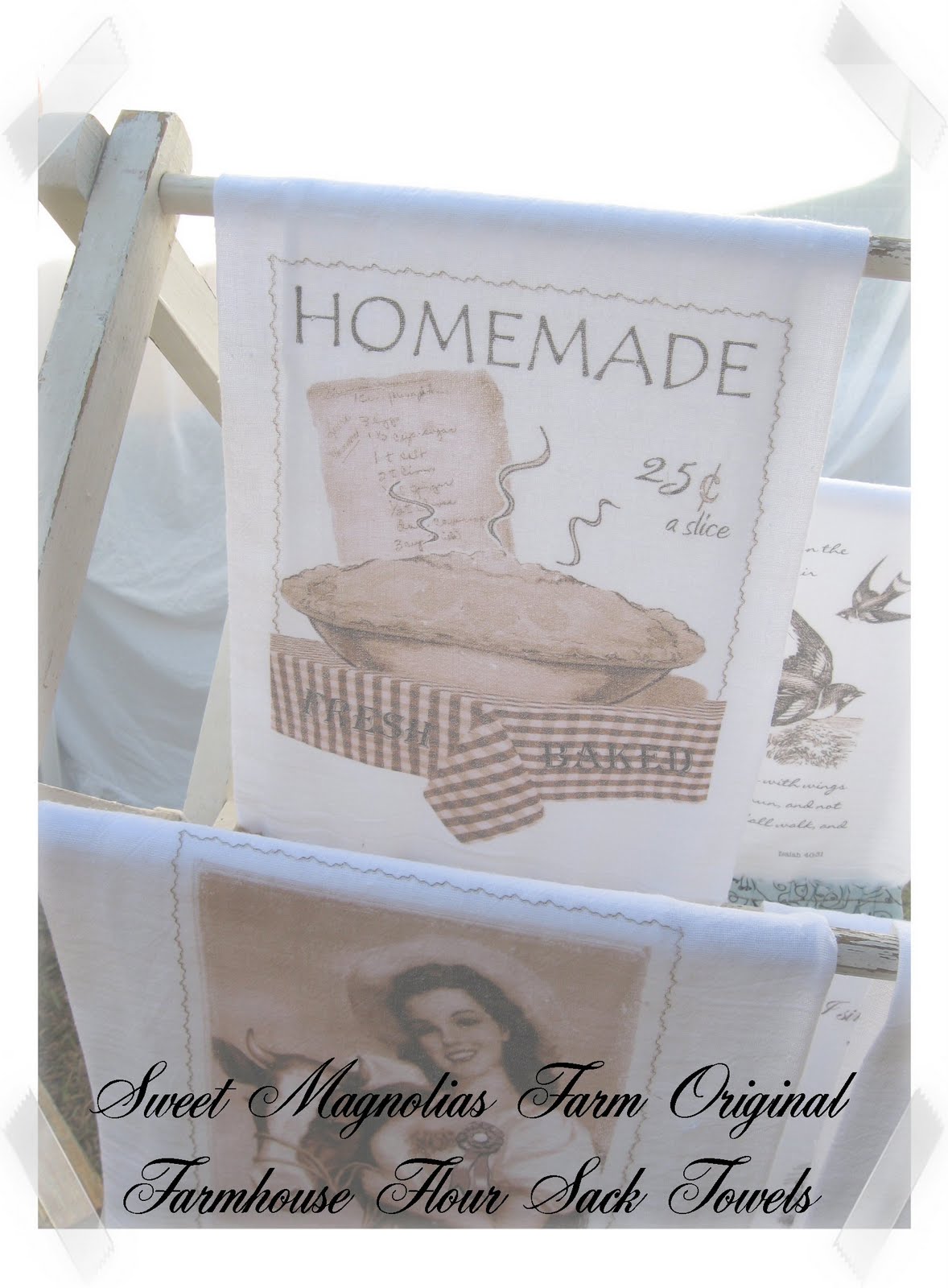 And last but not least ...Our new Sweet Magnolias Farm Girl Totes ... and our new line of Farmhouse Flour Sack towel aprons ..that you won't want to miss out on ..there are still some wonderful ones left ...And of course much much more ...